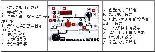 ADMIRAL350DC是簡便、穩(wěn)固、內(nèi)置水冷的新一代數(shù)字化氬弧焊接設(shè)備。氣電一體式焊**接頭,焊接參數(shù)程序設(shè)置并可儲存50條焊接程序: