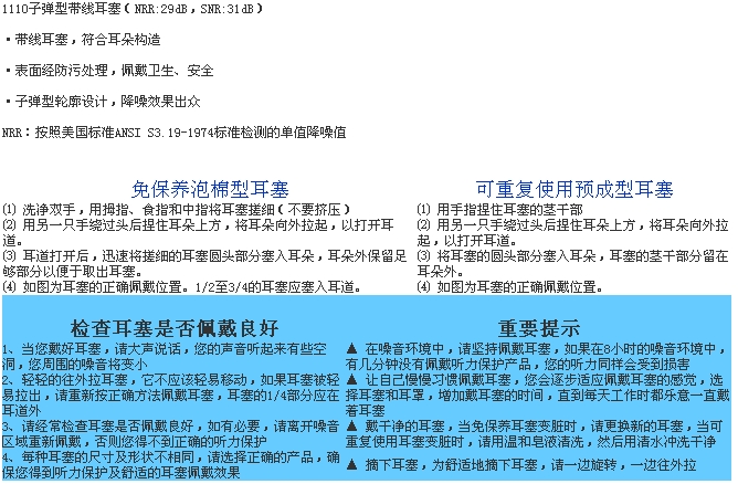 3M1100子彈型耳塞NRR: 29dB