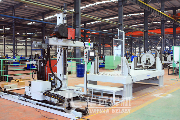 后支腿立焊專機主要由工件支撐架、焊接操作機、跟蹤探頭、焊接電源及檢測、控制系統(tǒng)等部件組成。配置電動行走的精密型焊接操作機,可實現(xiàn)焊槍三軸方向上的調整。