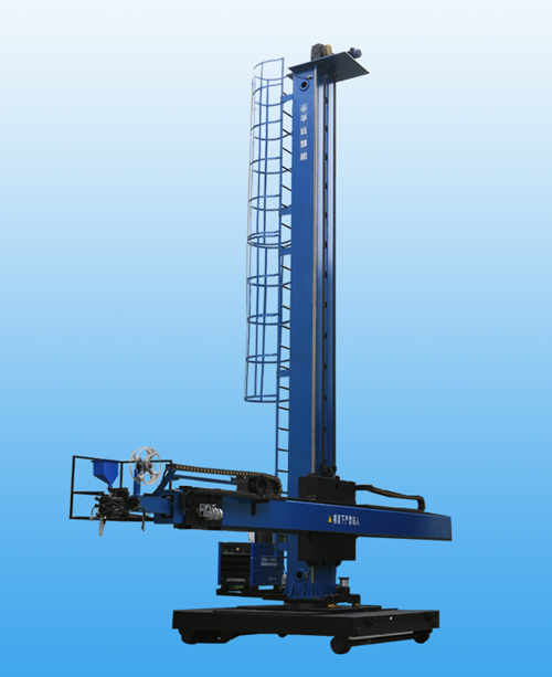 廣泛用于大型筒體工件、結(jié)構(gòu)件的自動(dòng)焊接加工,是保障焊接質(zhì)量、提高生產(chǎn)效能、改進(jìn)工作環(huán)境的自動(dòng)化效率高焊接輔機(jī)。本機(jī)通過橫臂伸縮帶動(dòng)機(jī)頭(焊槍)行走以實(shí)現(xiàn)長直焊縫的自動(dòng)焊接,也可通過橫臂伸縮、升降將機(jī)頭(焊槍)移動(dòng)至待焊位置后固定,再利用 變位機(jī)械轉(zhuǎn)動(dòng)工件完成環(huán)形焊縫的自動(dòng)焊接。常與滾輪架、變位機(jī)、焊機(jī)等設(shè)備配套使用,組成自動(dòng)焊接中心;也可配置其它作業(yè)機(jī)頭,進(jìn)行相應(yīng)自動(dòng)化作業(yè)。