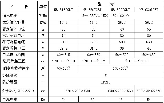 NB-315、350、500、630IGBT逆變式氣體保護(hù)焊機(jī)