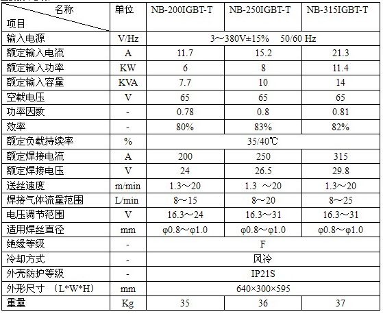 NB-200/250/315IGBT-T逆變式CO2/MIG/MAG氣體保護(hù)焊機(jī)