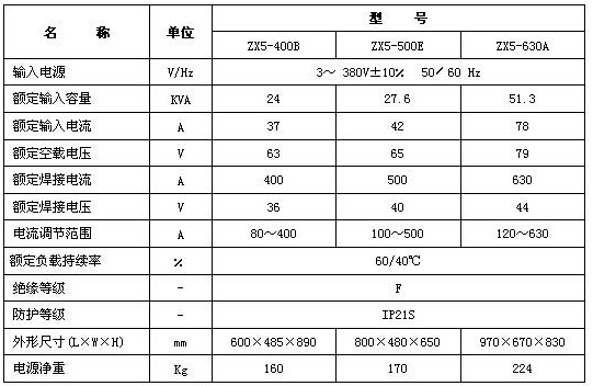 ZX5-400B、500E、630A 可控硅整流手工電弧焊機(jī)
