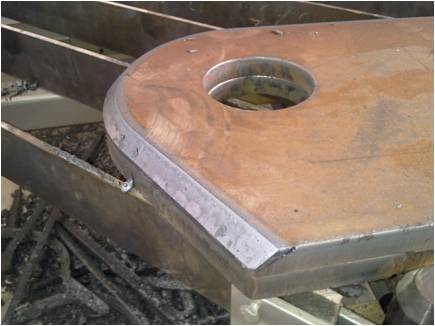 雙工位切割機(jī)器人工作站主要用于電力機(jī)車(chē)和煤機(jī)產(chǎn)品碳素鋼、低合金高強(qiáng)度鋼板材坡口的切割加工。為有效提高生產(chǎn)效率,減小工人勞動(dòng)強(qiáng)度,工作站采用單機(jī)器人雙工位平行布置方式,即:?jiǎn)翁鬃角懈顧C(jī)器人+雙套切割平臺(tái)。機(jī)器人選用日本OTC公司生產(chǎn)的AII-V6L型機(jī)器人,工作半徑達(dá)2006mm。該機(jī)器人具有臂伸范圍廣,負(fù)載大等特點(diǎn),特別適合于切割加工的應(yīng)用。