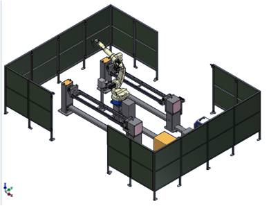 該機器人焊接工作站主要用于煤機結(jié)構(gòu)件的自動焊接,采用頭尾架式單軸變位機+六軸聯(lián)動機器人雙工位布局,機器人安裝于雙工位中間。為方便進行多種規(guī)格工件焊接及參數(shù)設(shè)置,控制系統(tǒng)采用三菱PLC+工業(yè)觸摸屏方式進行控制和操作,使整套設(shè)備具有更大的柔性及靈活性,并可有效提高生產(chǎn)效率。